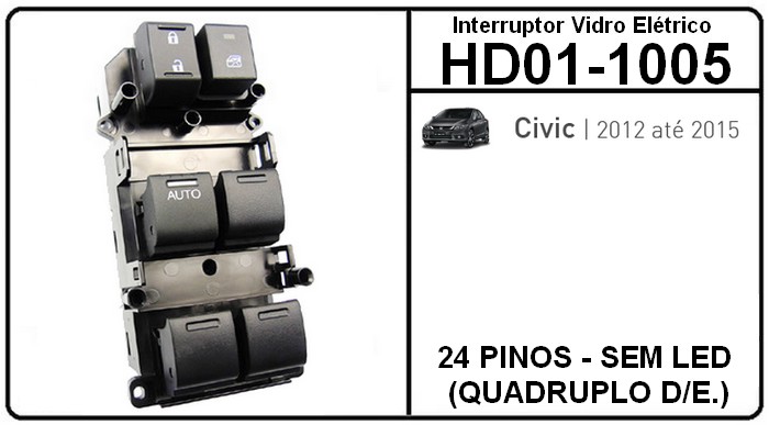 IVE BOTAO HD CIVIC 2012/2015 / 24 PINOS – SEM LED (QUADRUPLO D/E.) HD01-1005 – 1505.002
